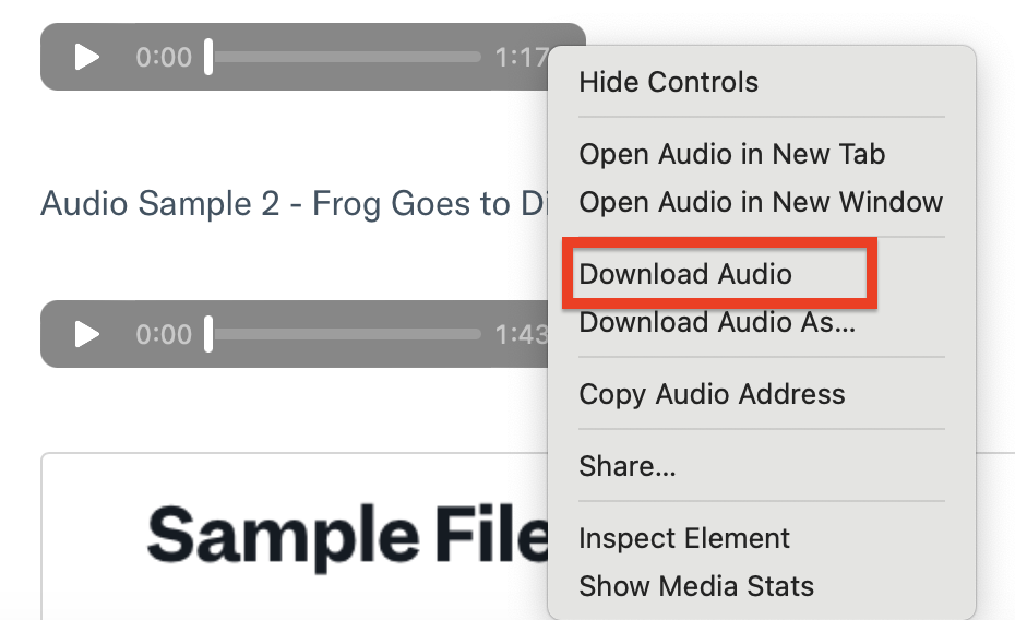 (In Safari, click Control while clicking on the audio file to download the files.)